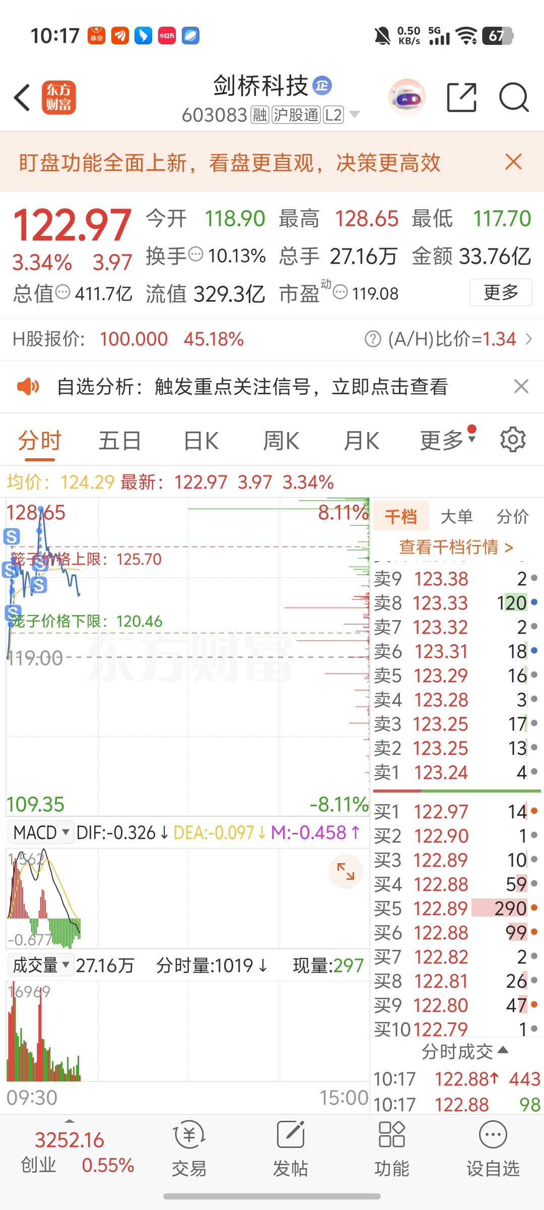 $剑桥科技(SH603083)$ 对不起大家 被我卖崩了,以为卖飞结果卖崩