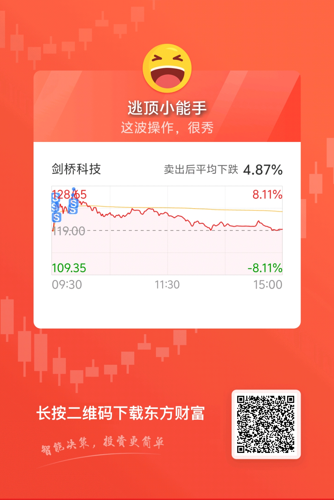 $剑桥科技(SH603083)$ 不卖的话白玩一天,早上以为卖飞了。下午一看卖的好