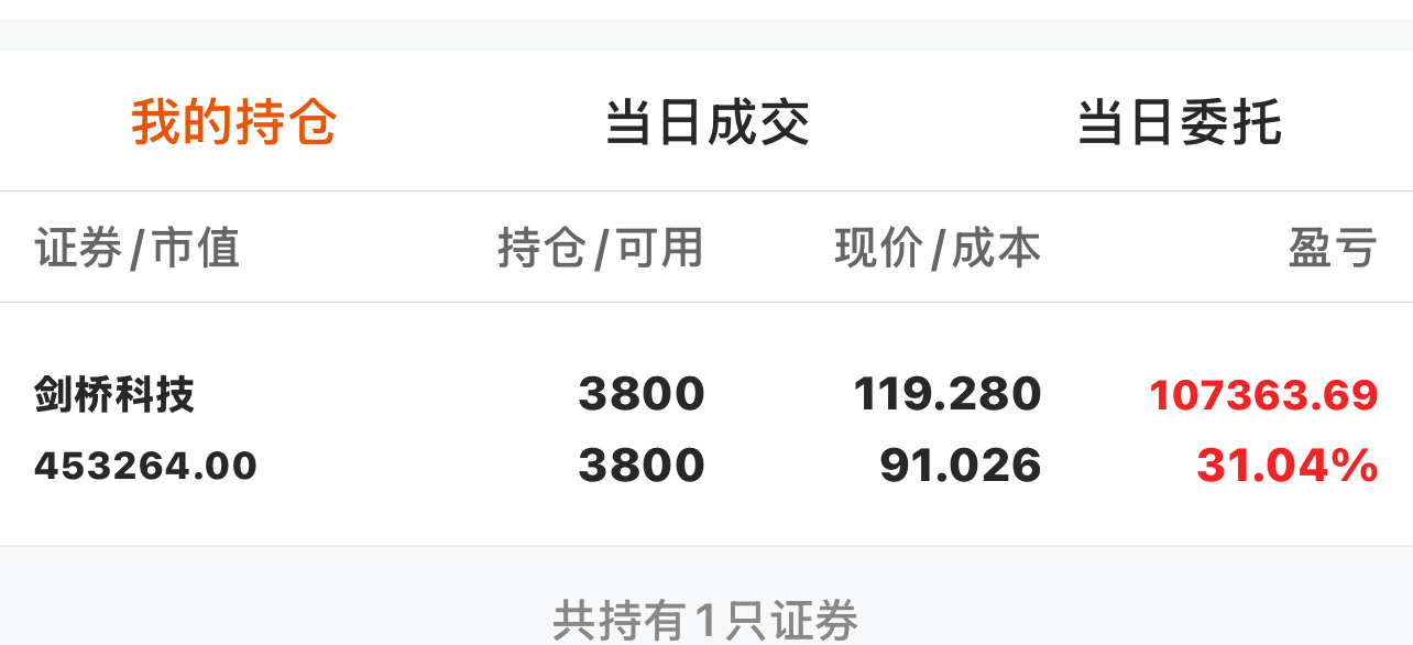 $剑桥科技(SH603083)$ 炒股只炒一只股
