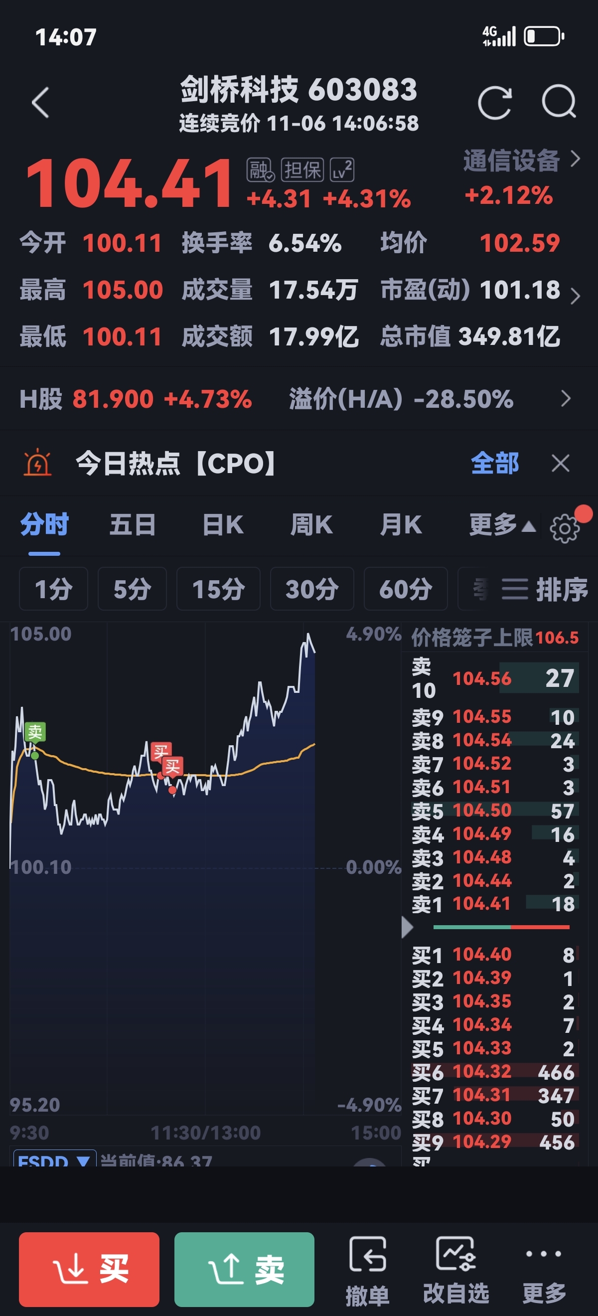 $剑桥科技(SH603083)$ 剑桥昨日已回,现在不宜追高