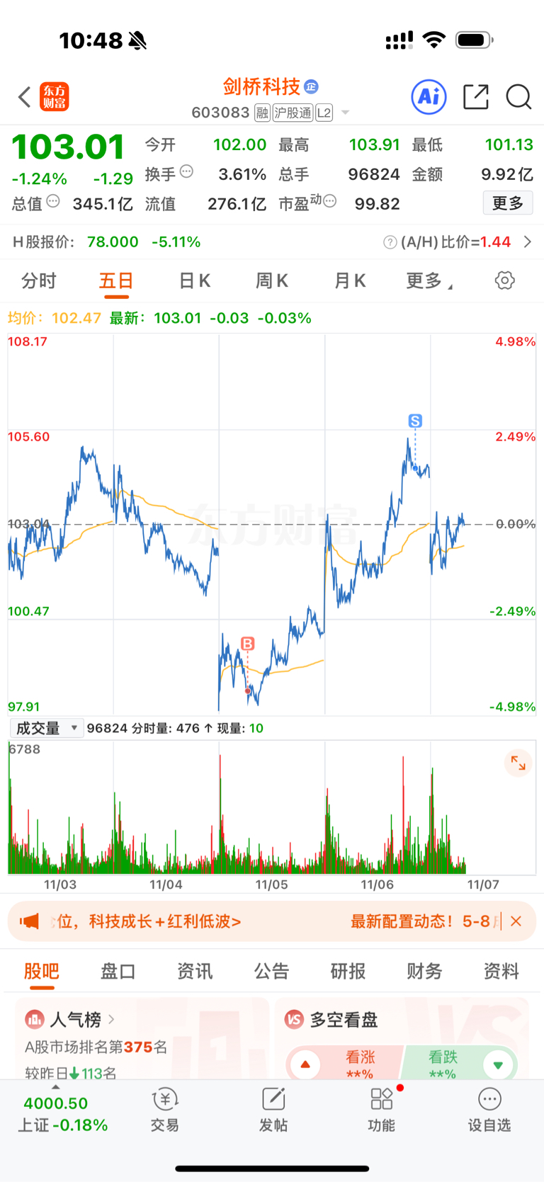 $剑桥科技(SH603083)$ 下来的话就再买点吧,来回做T回回血