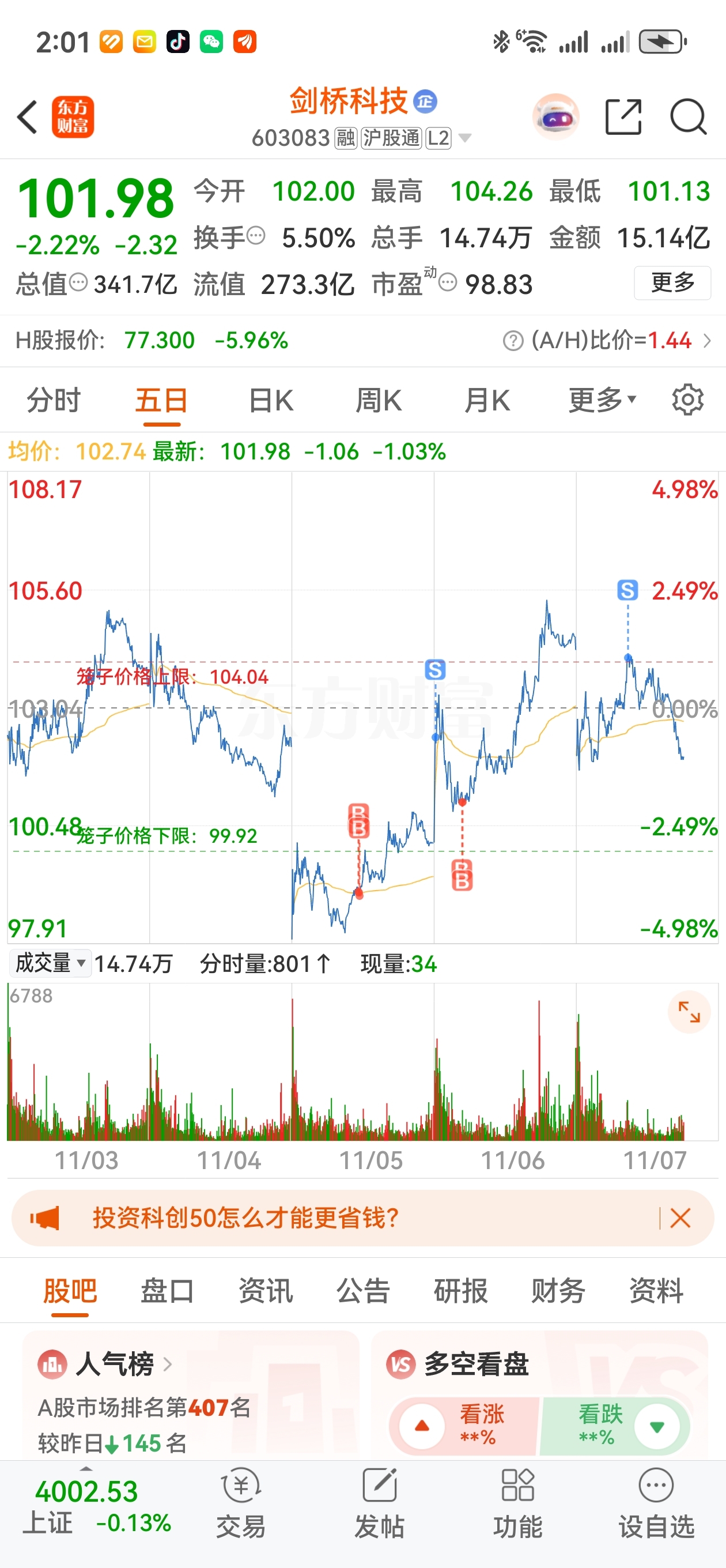 $剑桥科技(SH603083)$ 再低一点把它踢回来。