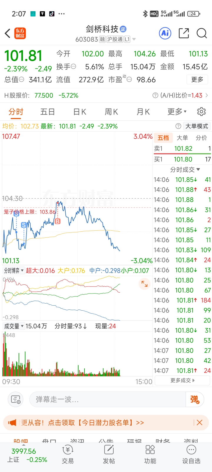$剑桥科技(SH603083)$ sb战法重出江湖