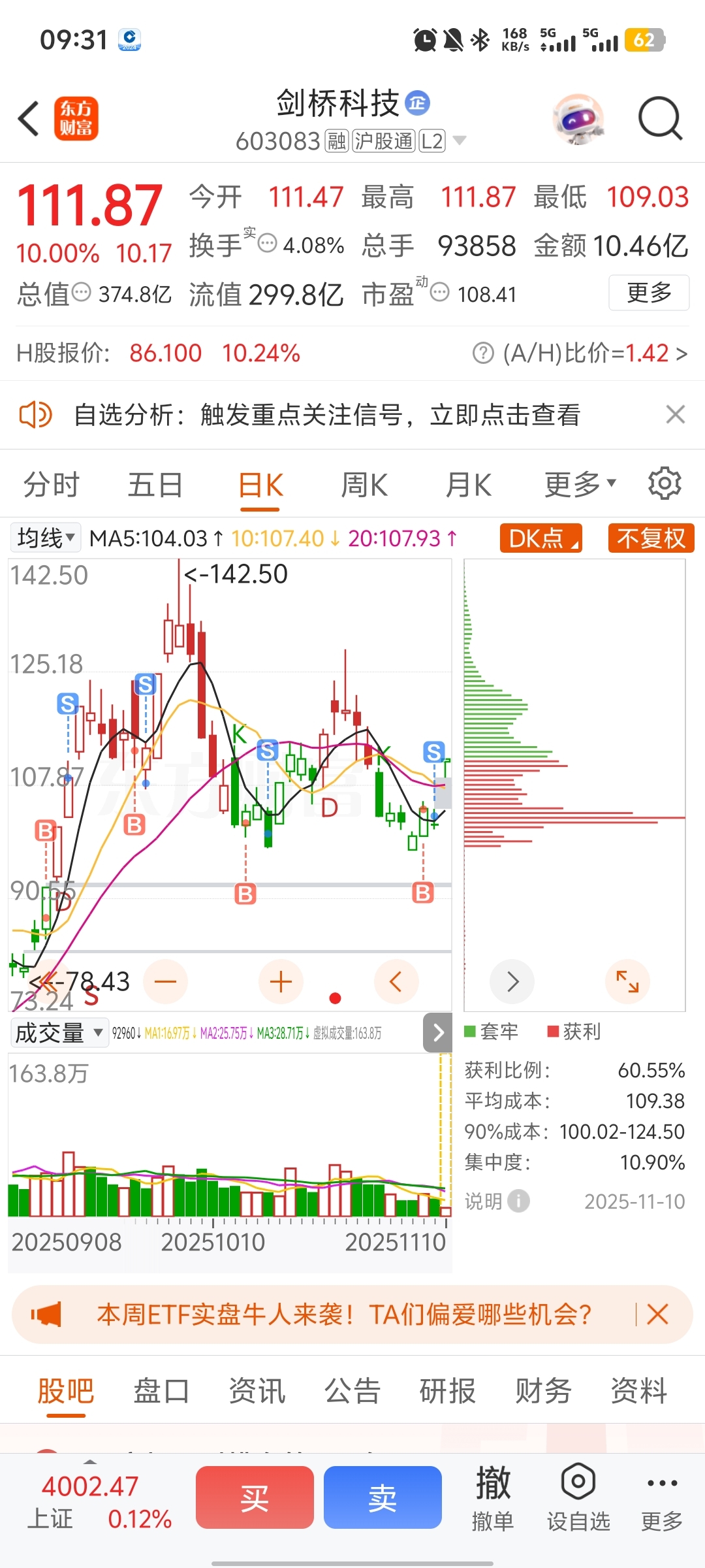 $剑桥科技(SH603083)$ 卖飞剑桥的神,4次S,次日涨停