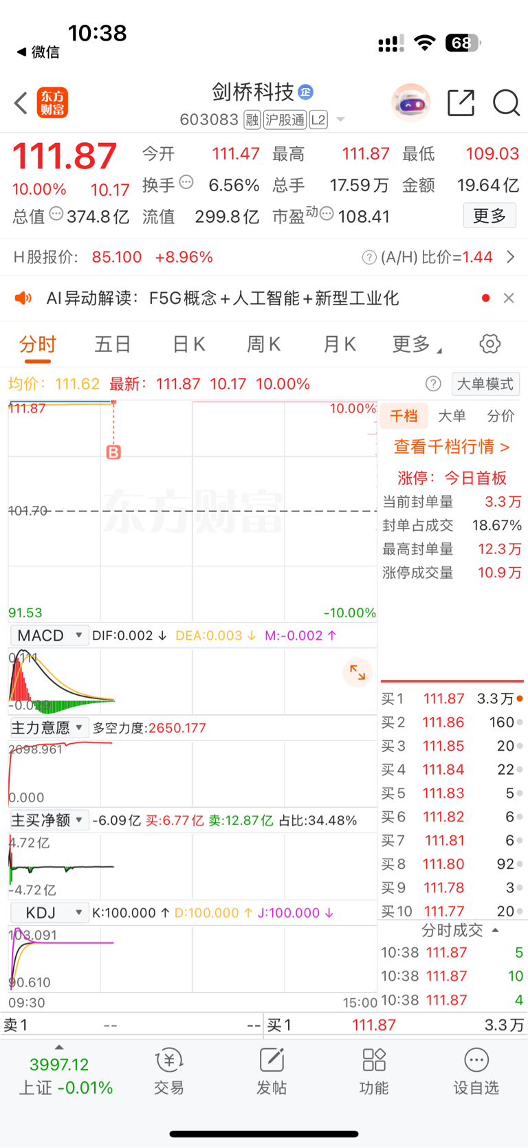 $剑桥科技(SH603083)$ 一买你就跌,一卖你就涨,害人