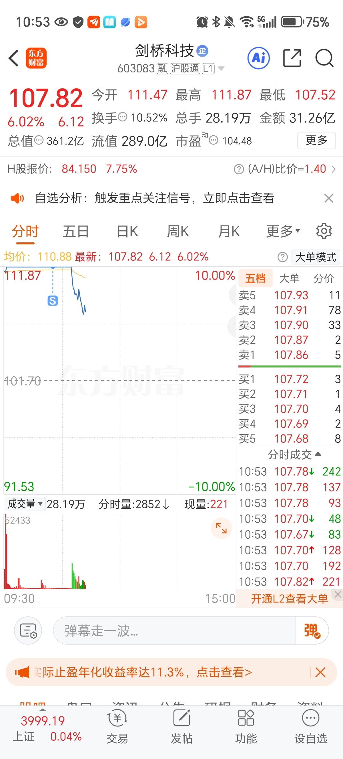 $剑桥科技(SH603083)$ 服了,我不就卖了200股,至于破板吗??