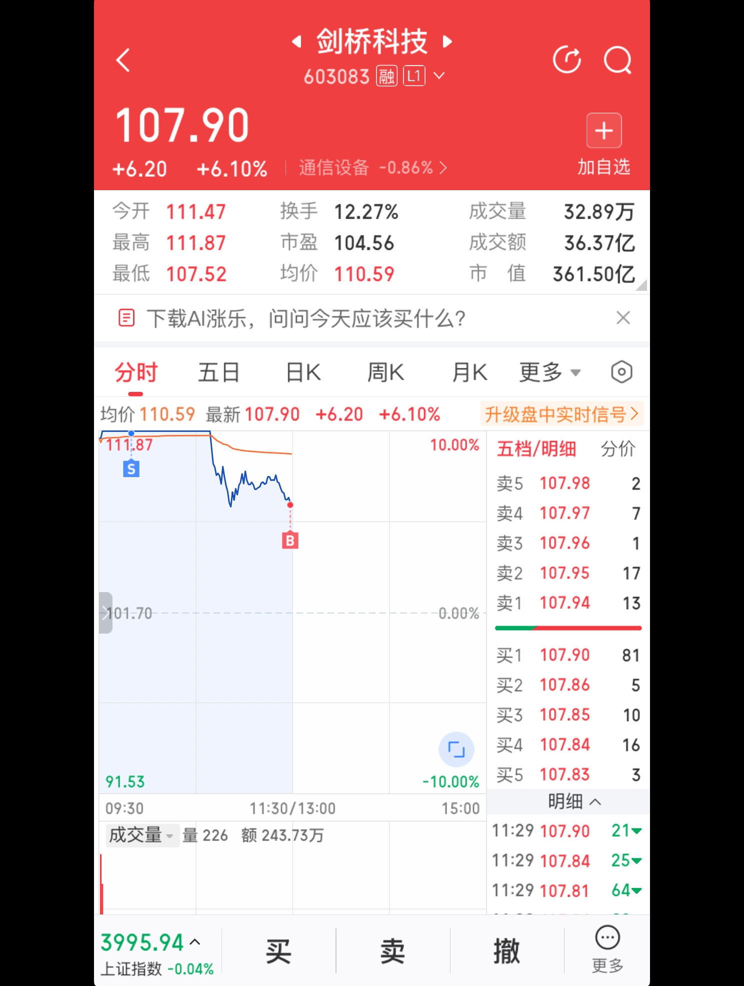 $剑桥科技(SH603083)$ 等着下午封回去