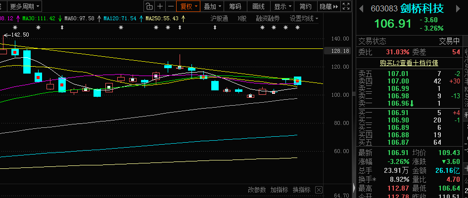 下跌趋势,不要抱大幻想,等中科曙光起稳,这个剑桥才起稳
