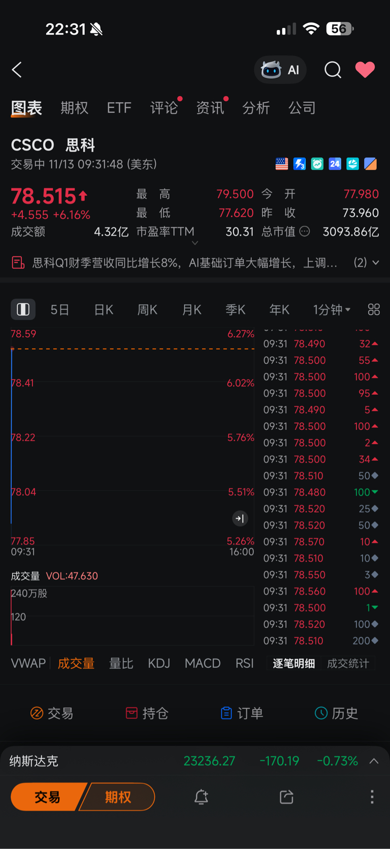 $剑桥科技(SH603083)$$思科(NASDAQ|CSCO)$