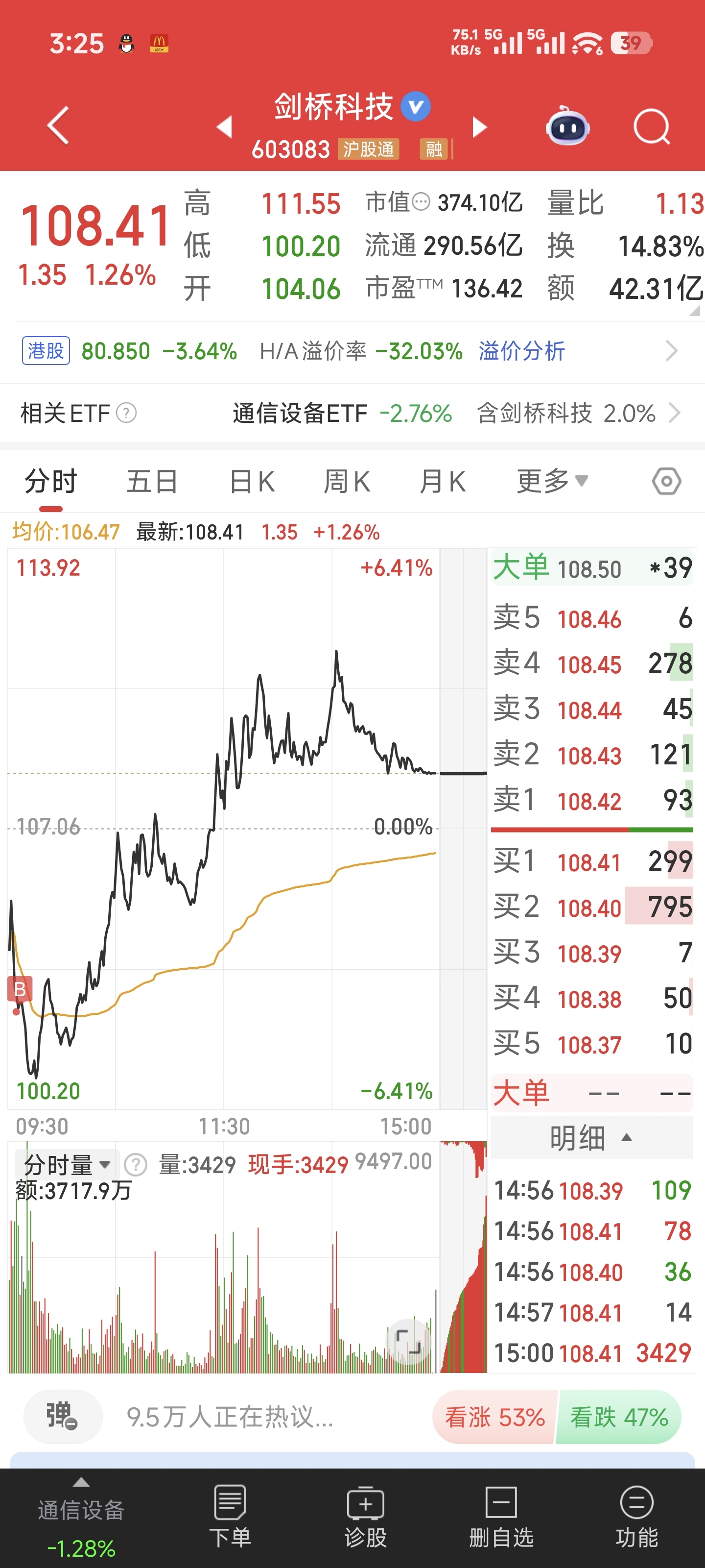 $剑桥科技(SH603083)$ cpo里的希望啊,今天开盘搞这么深水就判断是昨晚外围影响导致的错杀了,果断介入以后是真的给了惊喜,尾盘在大盘整体很拉稀的情况下居然可以稳住这个价位,只可惜仓位不是太多,下周一但凡还敢低开就要加仓了