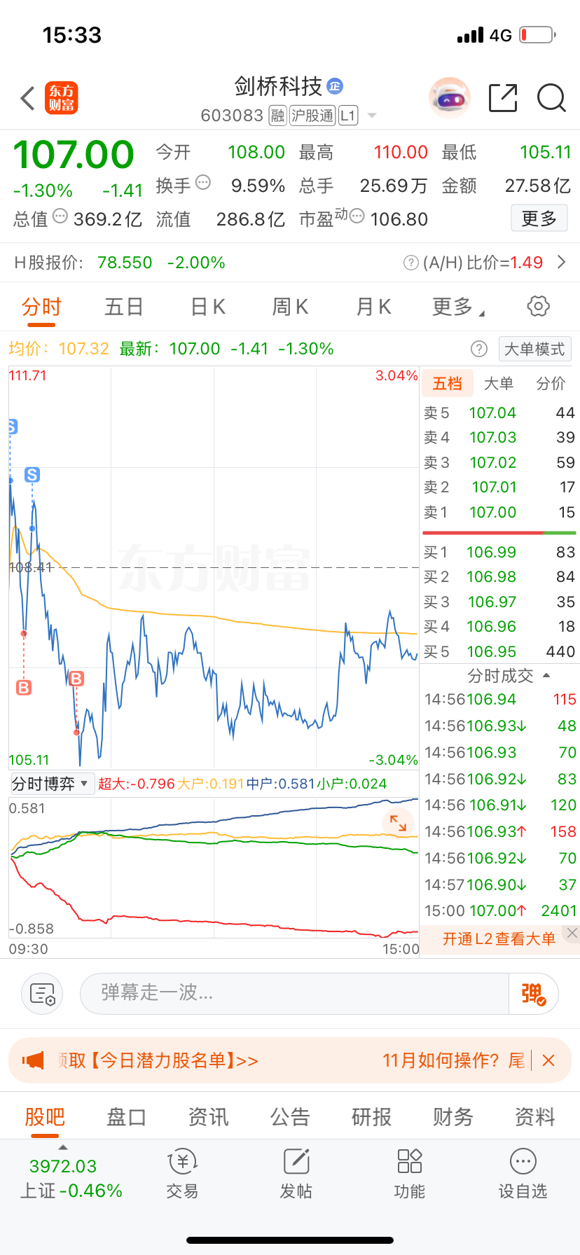 $剑桥科技(SH603083)$ 明天怎么看陈本变93了