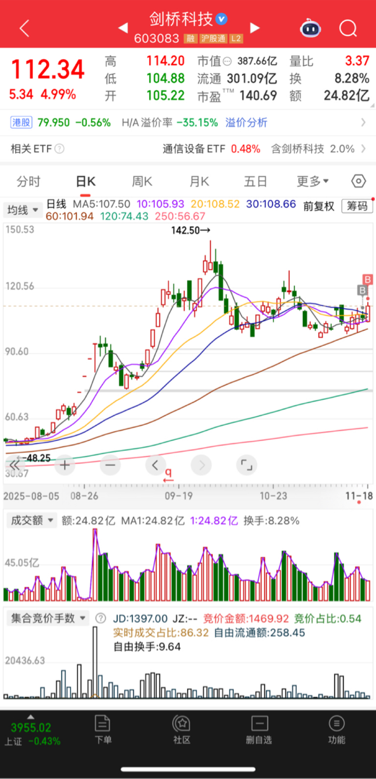 $剑桥科技(SH603083)$ 跟着二迟吃肉了