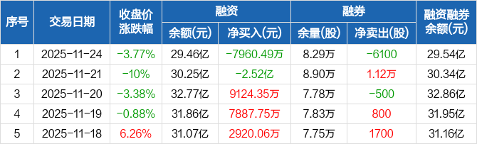 剑桥科技:融资净偿还7960.49万元,融资余额29.46亿元(11-24)