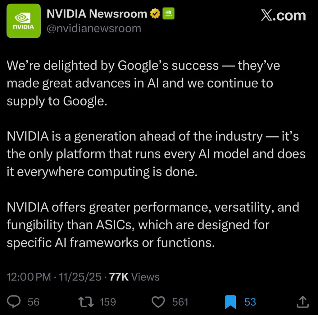 对于Meta和谷歌未来的合作,英伟达今天发表如下声明:将继续供货给谷歌