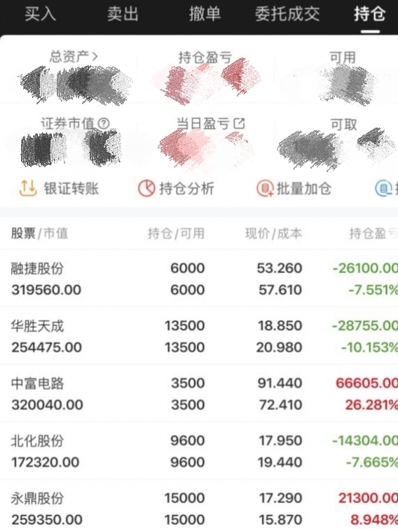 目前个人持有、融捷股份、华胜天成、中富电路、北化股份、永鼎股份、胜不骄败不馁,祝所有老铁收获满满。