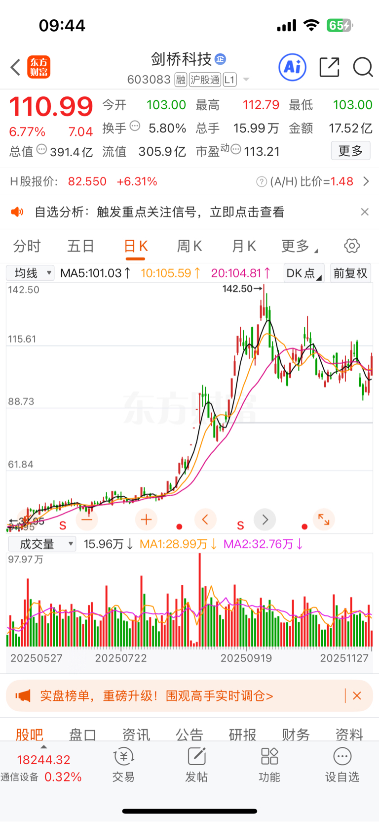 错过了10倍中际旭创,我们38块进场剑桥科技,有没可能哪一天走到380块,让我们也尝尝10倍滋味,2020年我们第一次进入股市,10块进入阳光电源,走到110块,又跌到60块,又走到180块,我们160块提前撤退,16倍收益。我们60块进入德业股份,走到345块,又跌到160块,又走到640块,我们平均600块附近撤退,10倍收益。自2022年我们再也没有这样的运气了,50块进入中际旭创,我们中间出出进进,没能长线持仓,成为我们错失10倍中际,著名投资人但斌写的“时间的玫瑰”,我们2020年刚入市时,傻傻呼呼的长线持仓,但盈利非常高,后来学“精明了”,但盈利能力变差了,唉,我们38块附近进入剑桥科技,长线持仓“有没可能走到380块”?我先做做梦,
