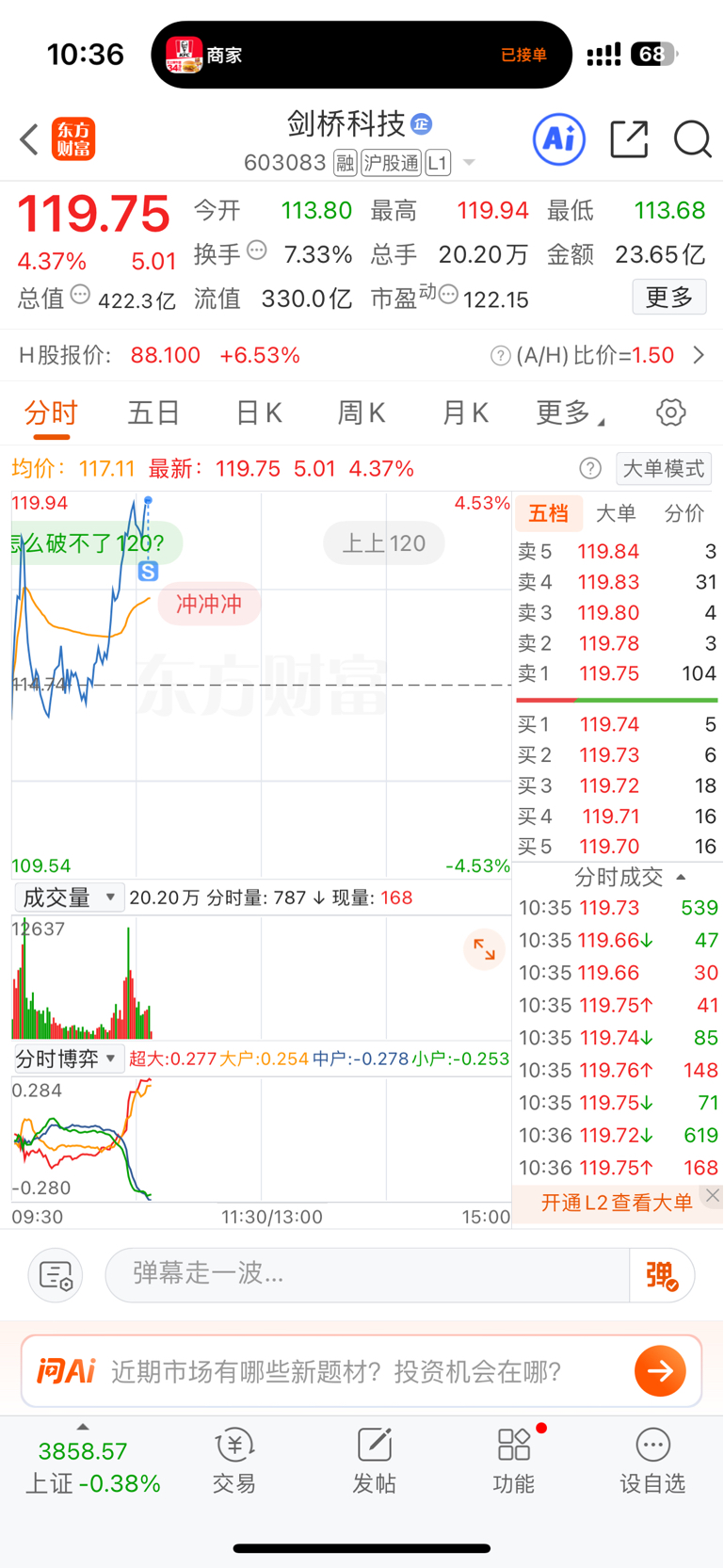 $剑桥科技(SH603083)$ 昨天进今天出,走了