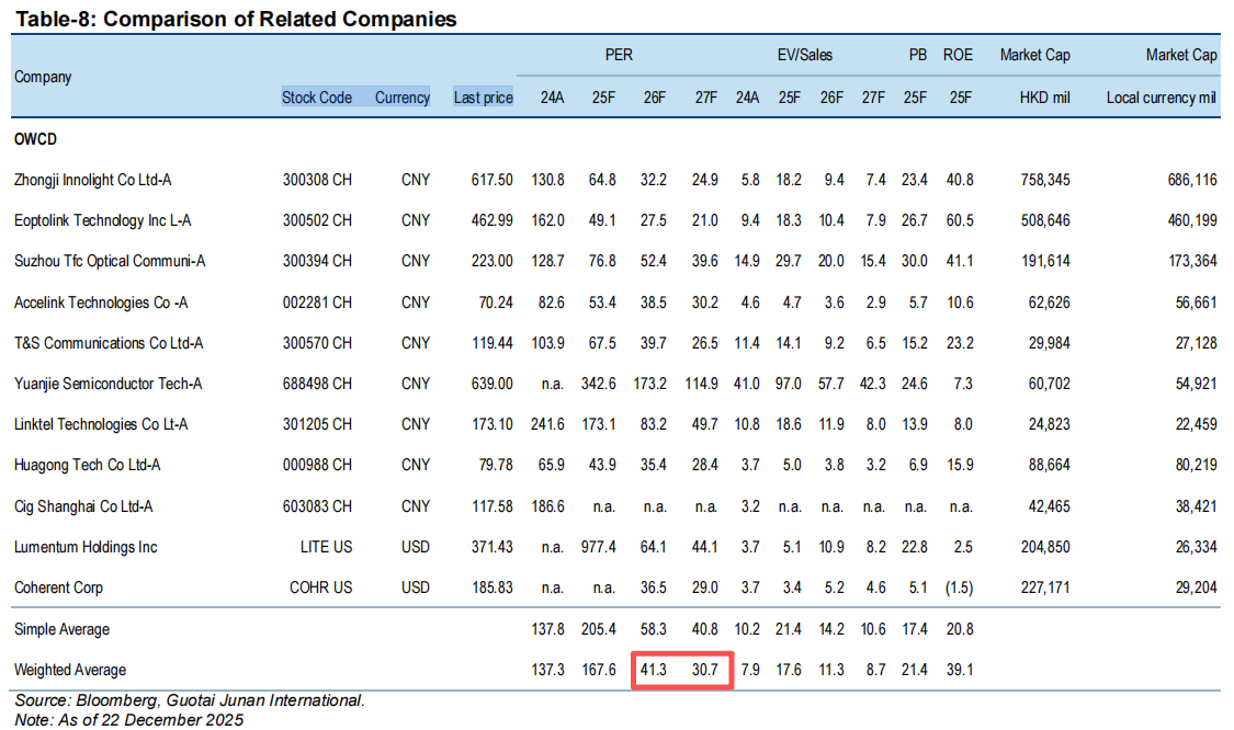 能从国君香港研报里看出剑桥是被低估的,剑桥当前450亿的市值,对应26年PE不到20倍,27年更是只有13倍,而行业中位数水平是40倍和30倍,剑桥性价比不言而喻