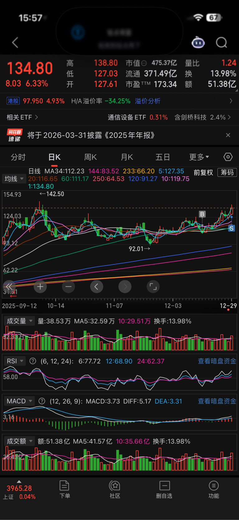 $剑桥科技(SH603083)$ 我先撤,不知对不对,还是祝愿大家继续吃大肉