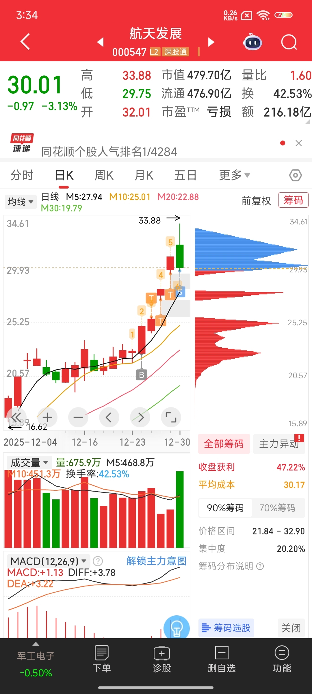今天清仓航天发展,平头哥继续持有,新进剑桥科技