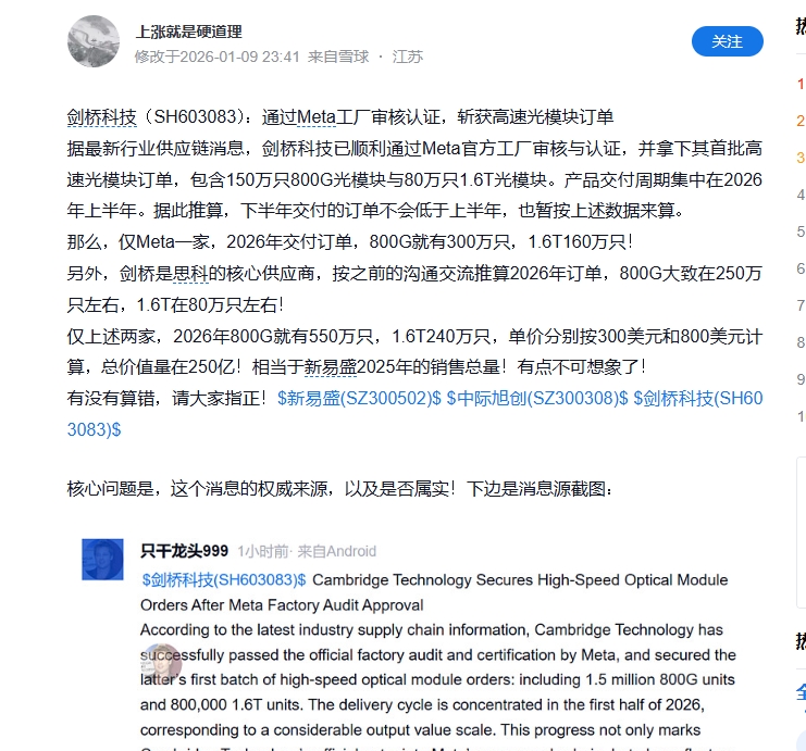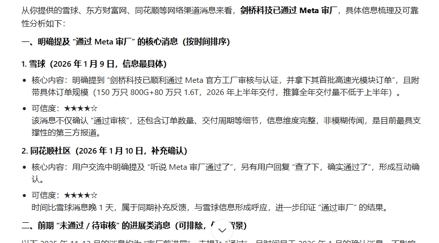 剑桥科技Meta马来西亚工厂审厂通过,消息来源于外文电子时报。