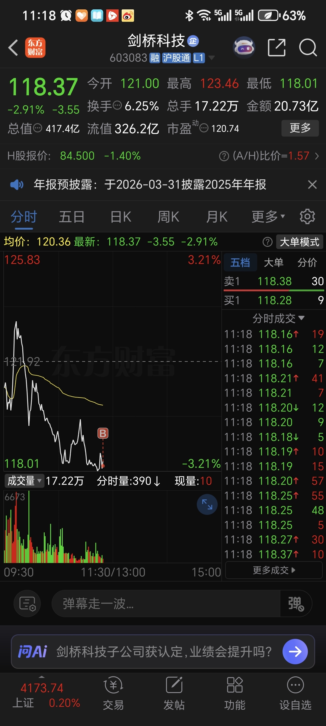 聊一下持股,剑桥和长飞光纤!这哥俩,买了一段时间,调整也进入到了第八天。今天被盘面带水里去了!不过相对于56个跌停局面,跌幅不算大,今天继续加仓买了!