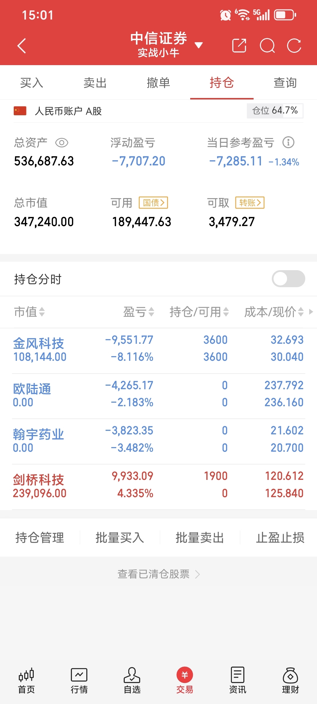 $剑桥科技(SH603083)$ 第68天,思路调整。开启进攻模式!仓位拉起来,聚焦核心重仓怼!今天靠剑桥回血