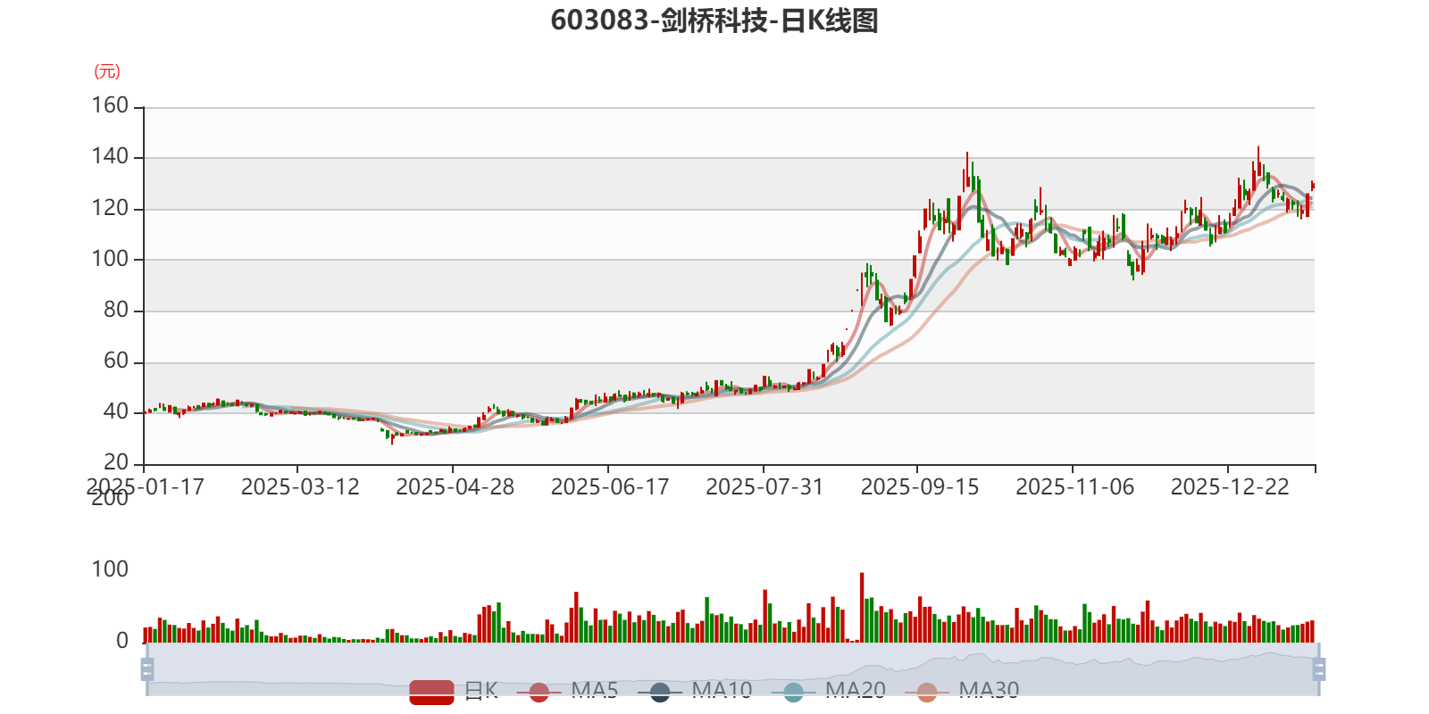 中证智能财讯剑桥科技(603083)1月16日晚间披露2025年度业绩预告,预计2025年归母净利润2.52亿元至2.78亿元,同比增长51.19%-66.79%;扣非净利润预计2.49亿元至2.75亿元,同比增长64.62%-81.81%。以1月16日收盘价计算,剑桥科技目前市盈率(TTM)约为164.65倍-181.64倍,市净率(LF)约6.7倍,市销率(TTM)约10.78倍。