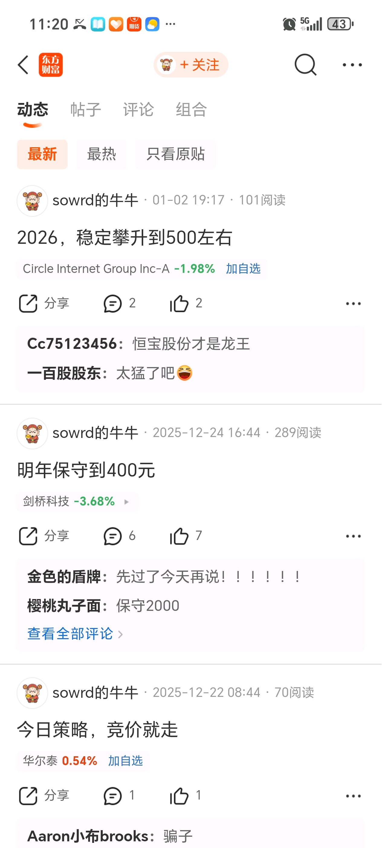 每一个散户,都会乐于追涨,见跌则如此牛牛,昨天还400今天就喊50