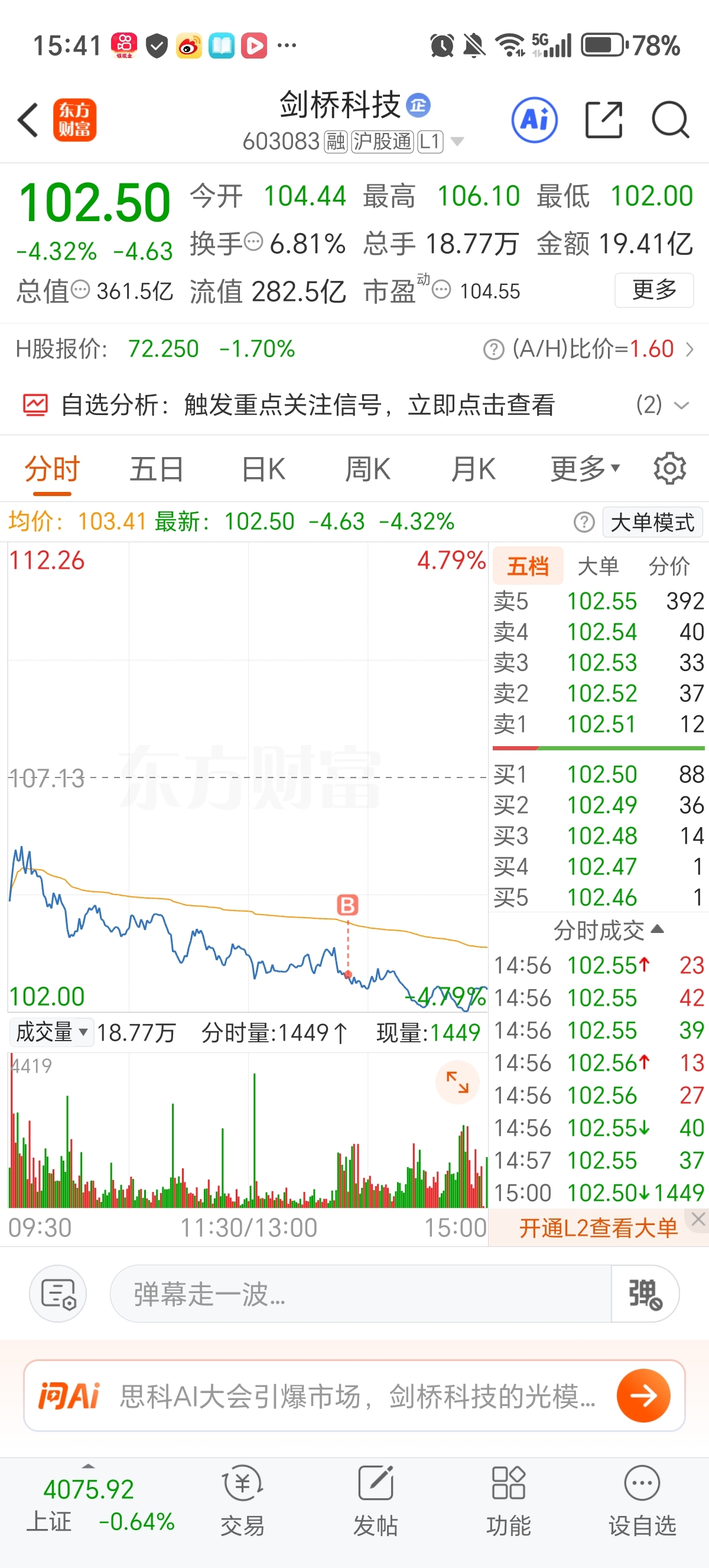 $剑桥科技(SH603083)$ CPO板块继续跌,就继续买吧!大跌大买不会错!大涨大卖就是了!