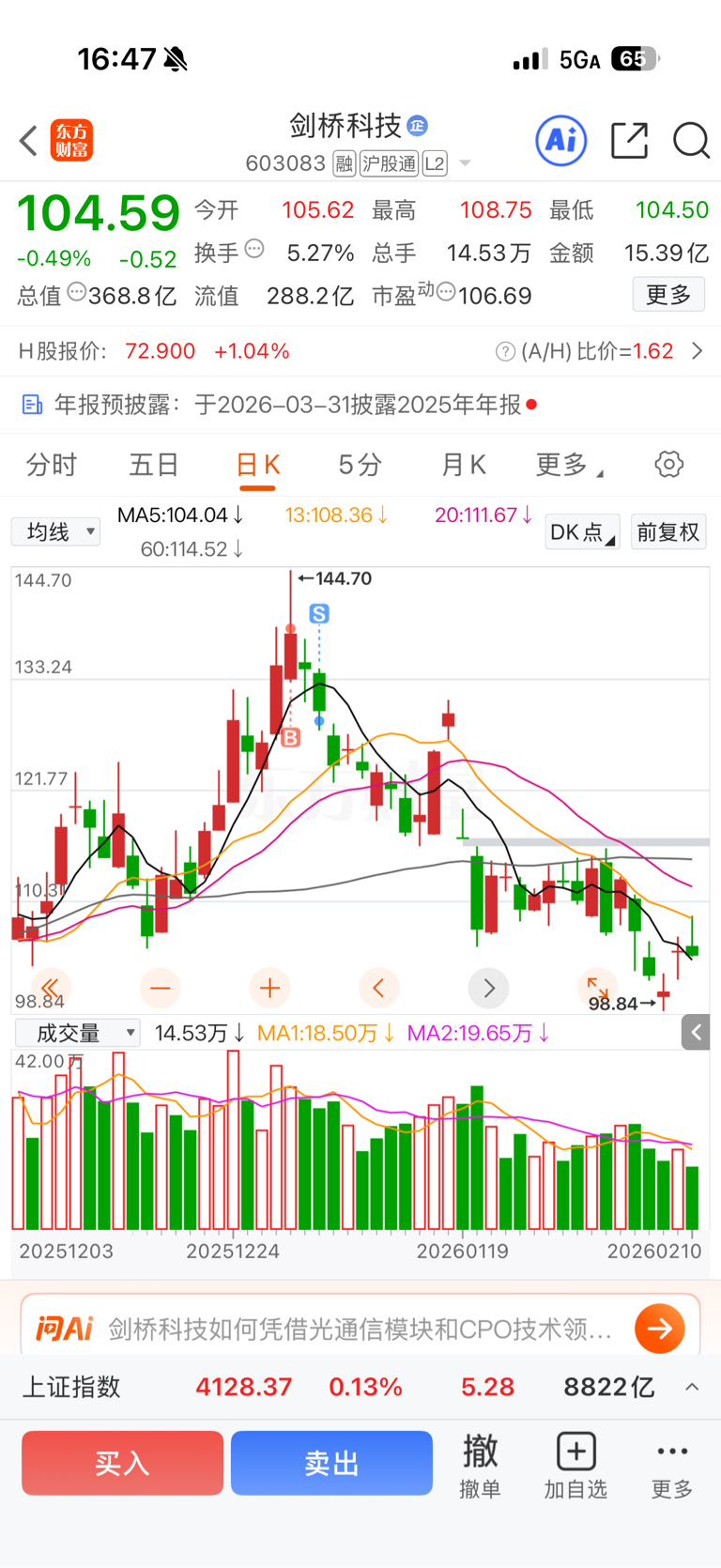 $剑桥科技(SH603083)$ 回来看看 还好跑了