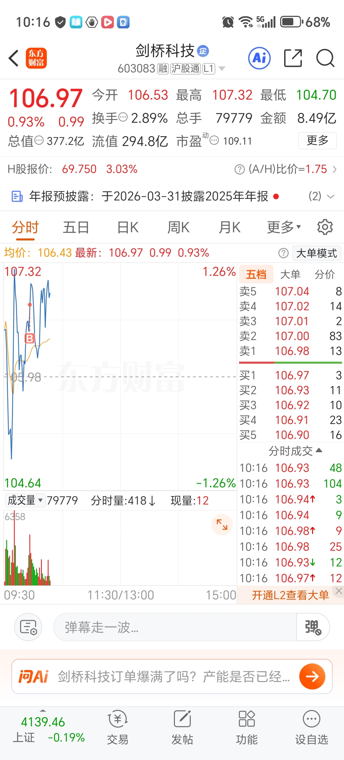 $剑桥科技(SH603083)$ 继续买看好今天突破站稳108!