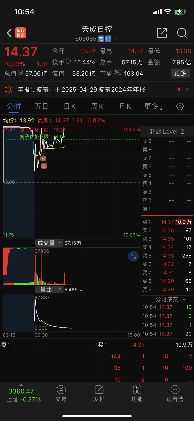 天成自控13.89元 买了大仓位[加油][上涨]