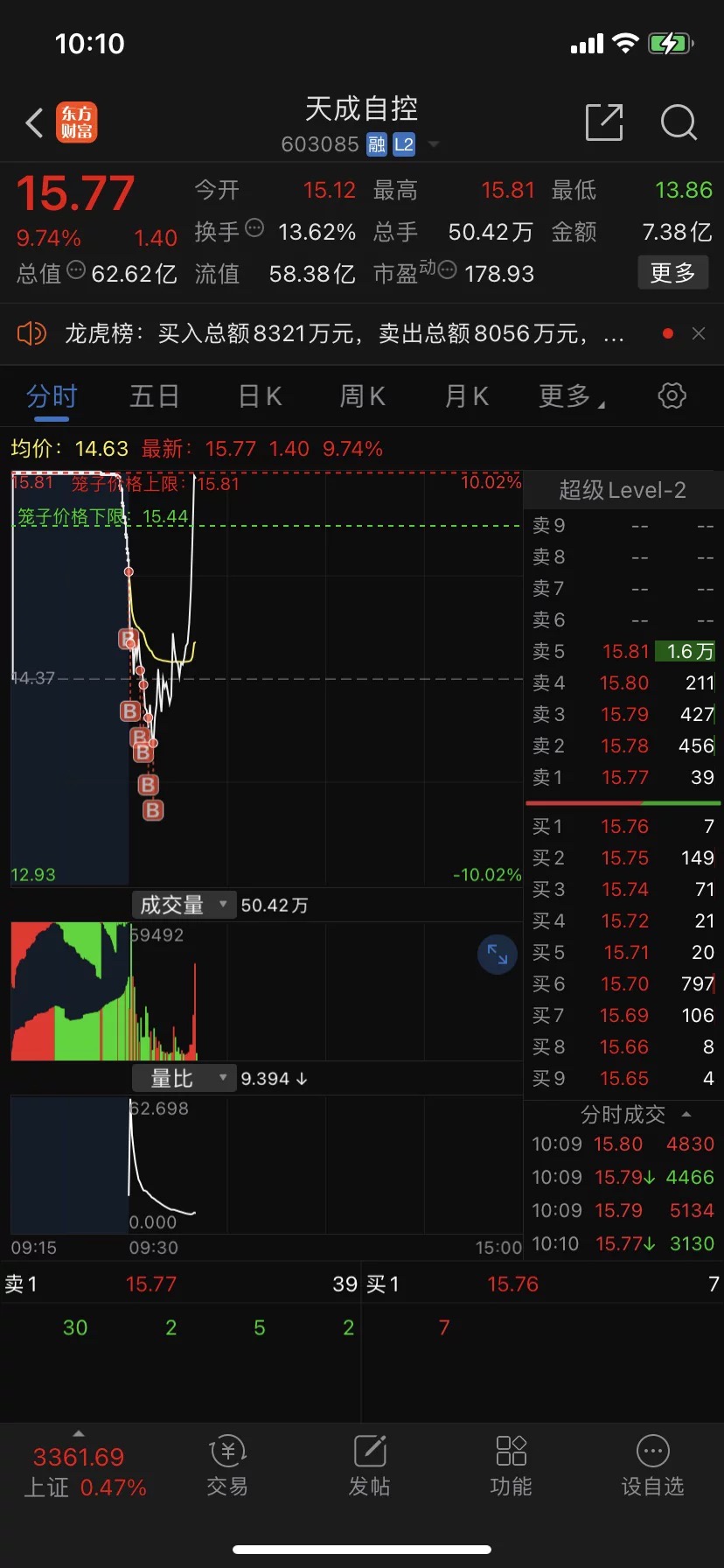 天成自控到过涨停板了[上涨][加油][财神]等着它继续封板[赞][财力][财神]