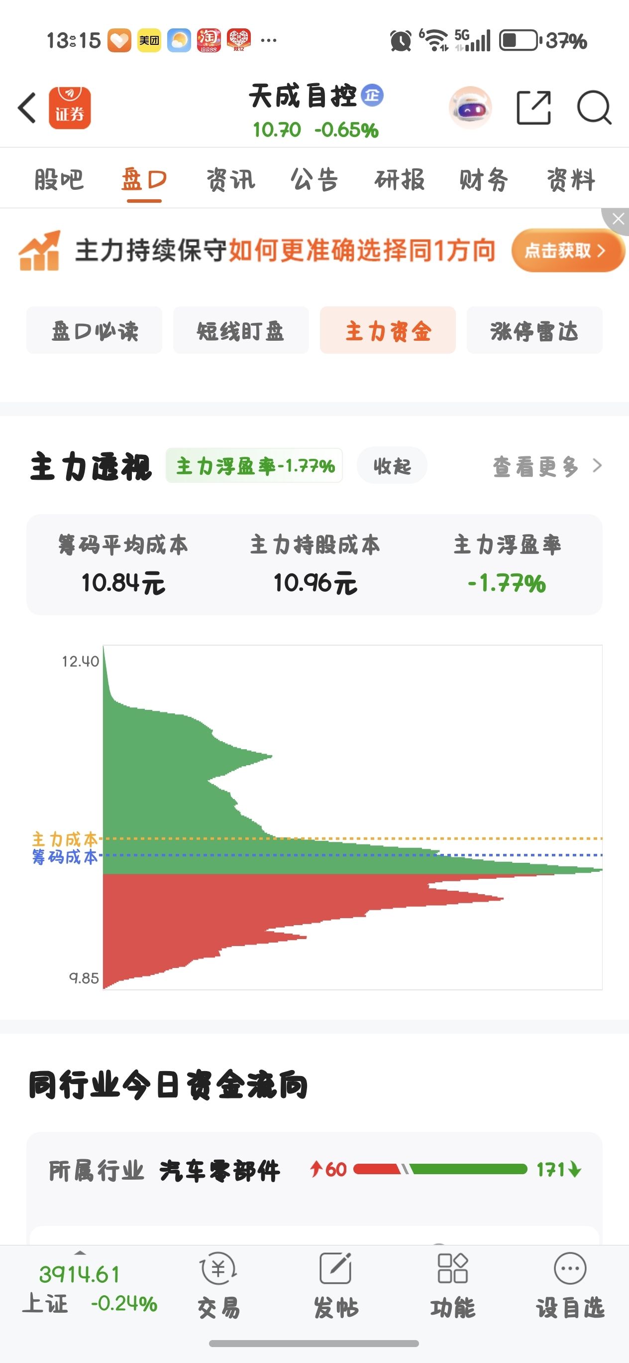 $天成自控(SH603085)$ 主力都亏钱,不拉准备割肉吗