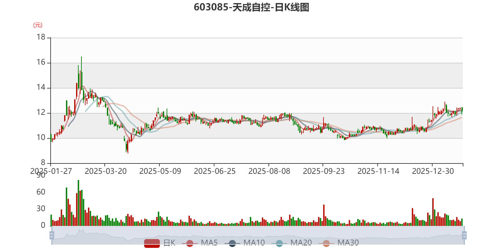 天成自控:预计2025年盈利8000万元-9500万元 同比扭亏