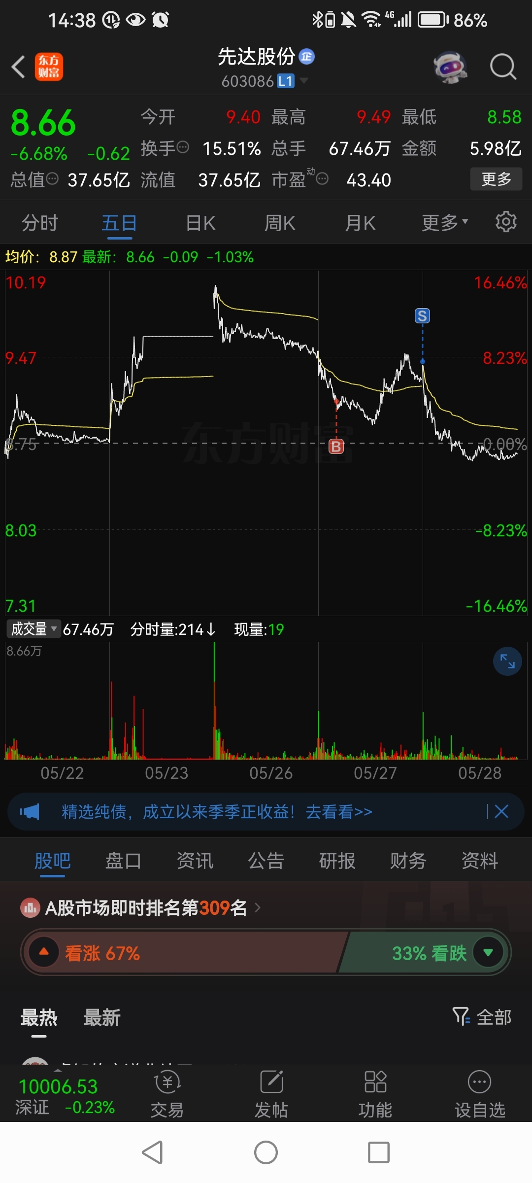 温馨提示: 1.根据《证券法》规定,禁止编造、传播虚假信息或者误导性信息,扰乱证券市场;2.用户在本社区发表的所有资料、言论等仅代表个人观点,与本网站立场无关,不对您构成任何投资建议。用户应基于自己的独立判断,自行决定证券投资并承担相应风险。《东方财富社区管理规定》
