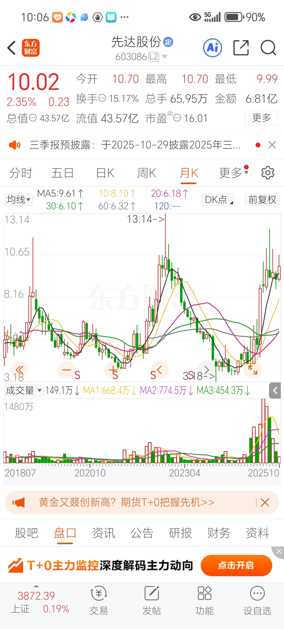 $先达股份(SH603086)$ 在山顶。懂的都懂。行业和业绩没有根本性改变的情况下10元就是铁顶