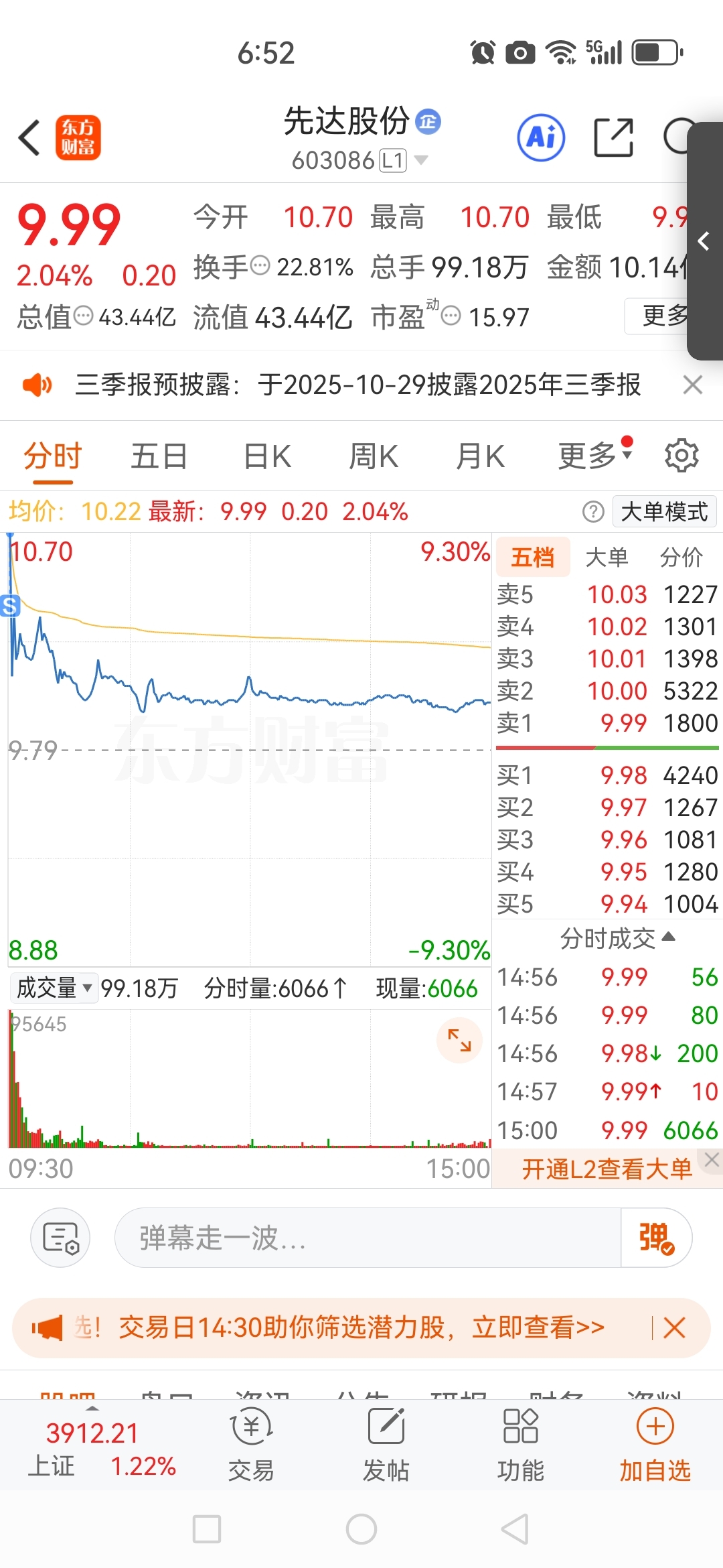 $先达股份(SH603086)$ 还好早上9.20就挂跌停跑了。