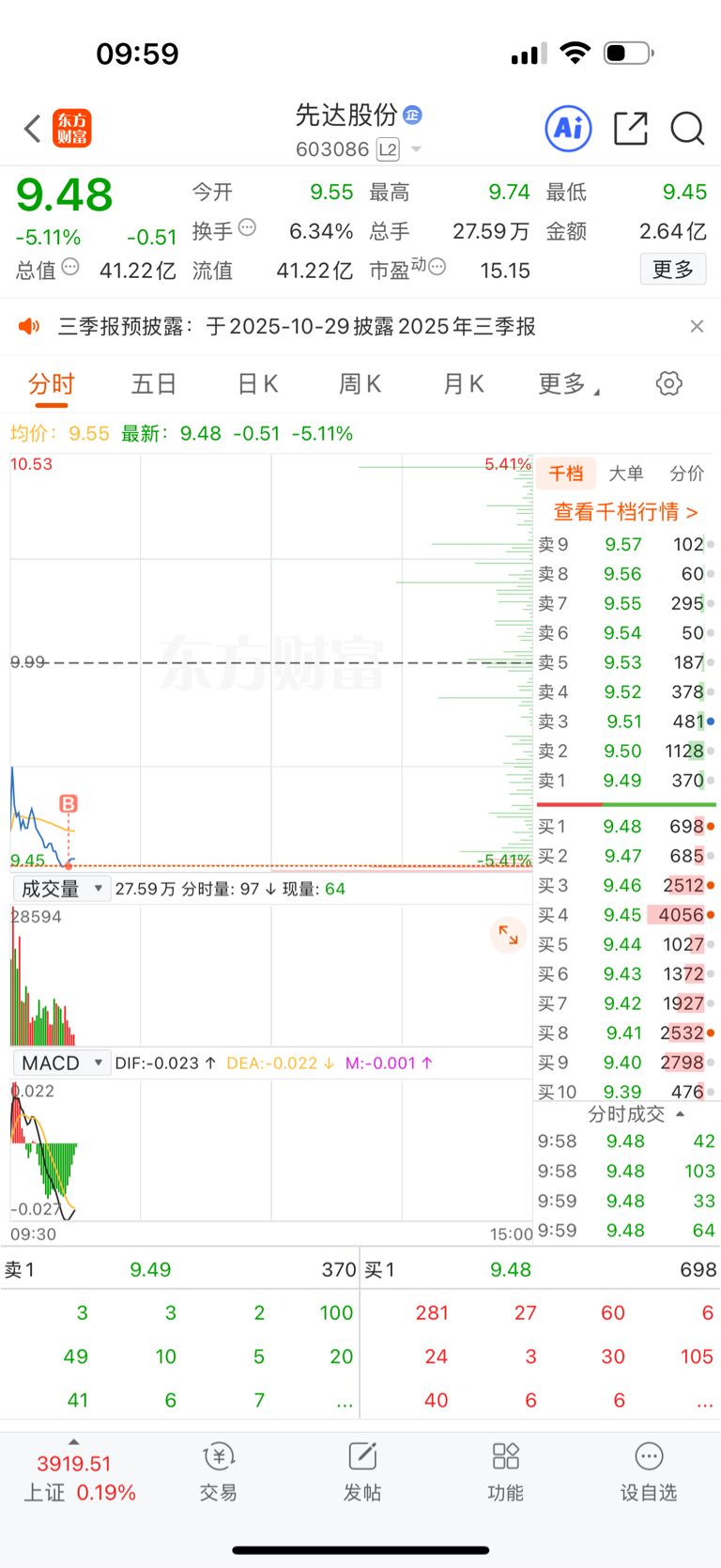 $先达股份(SH603086)$ 昨天开盘竞价卖的 今天在买点