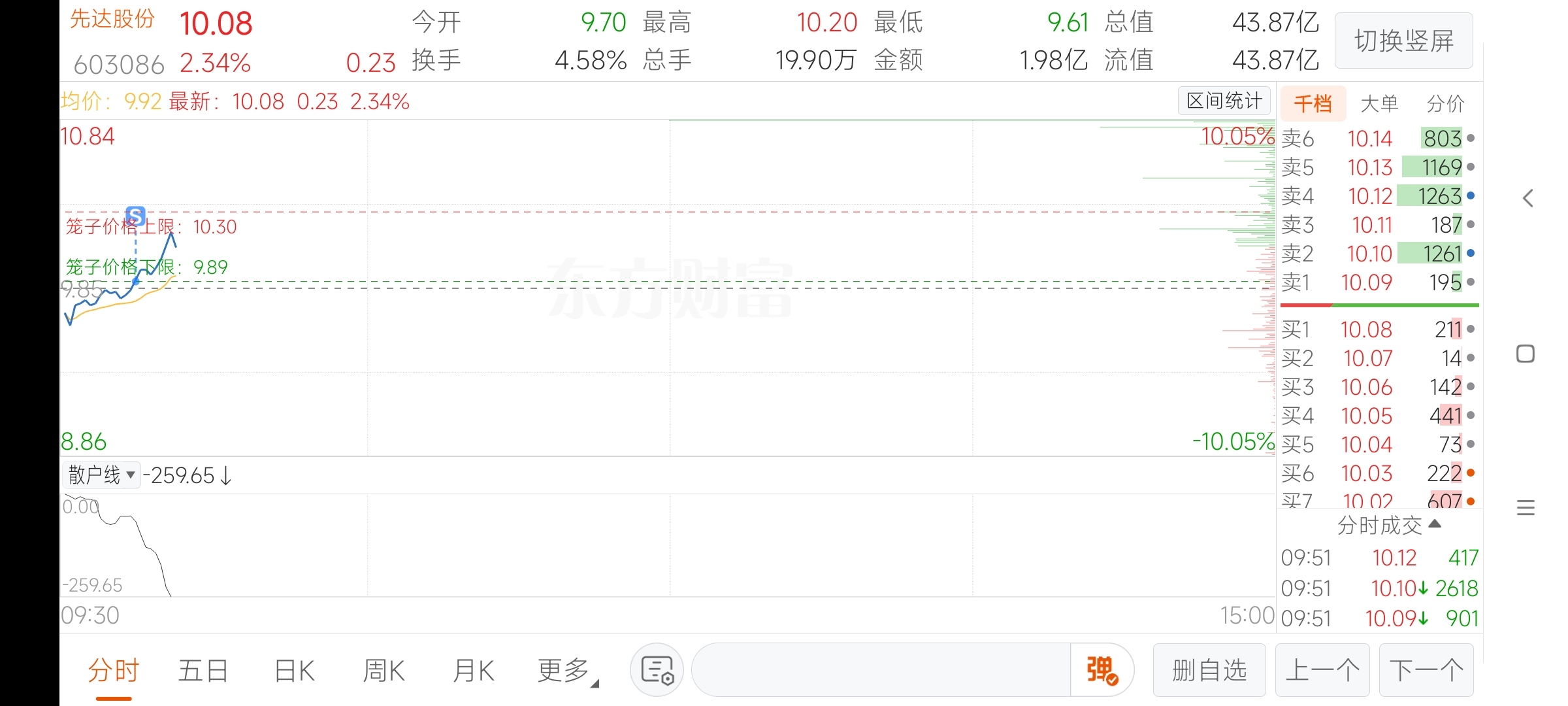 $先达股份(SH603086)$ 幸运今天没站在我这边。9.89卖掉一大部分。微赚。