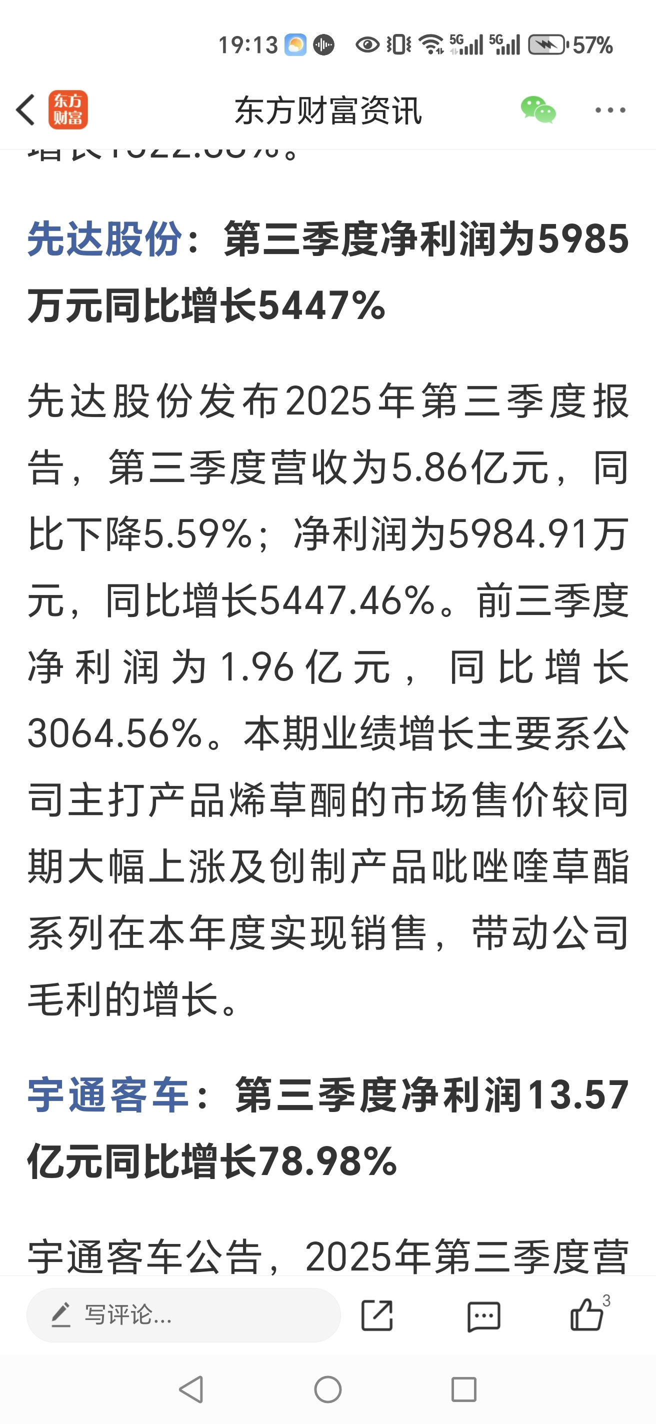 $先达股份(SH603086)$ 三季报三季度业绩50倍