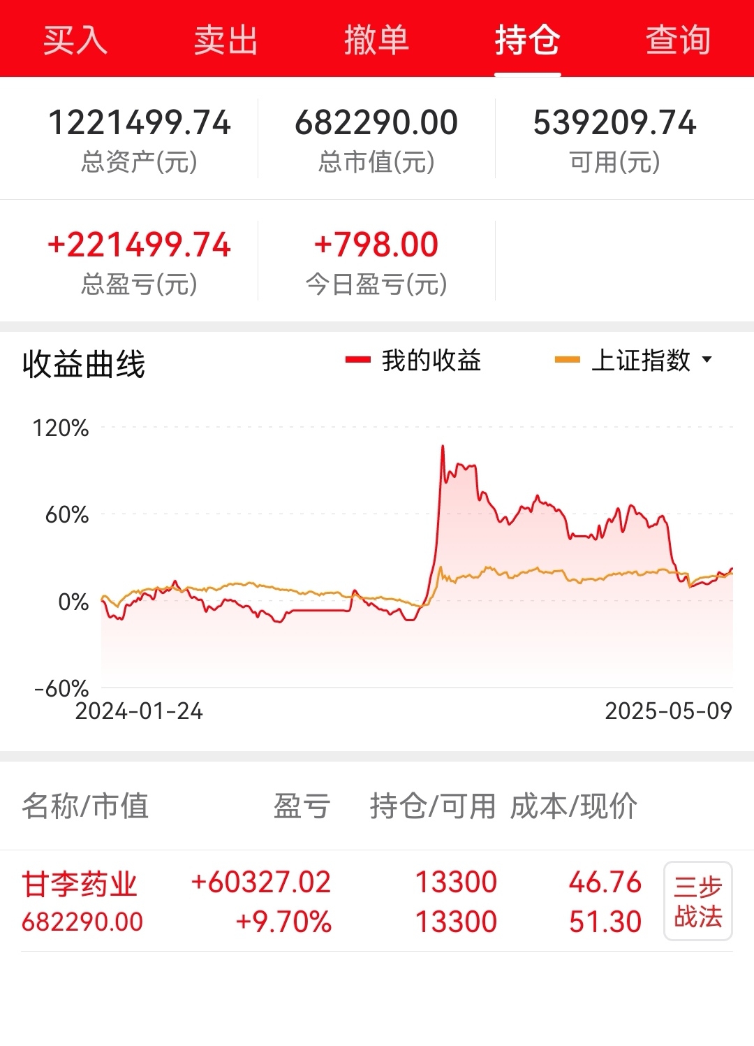 我是不是要展示一下我的盘,今年最高盈利百分之80,现在还有百分之20。六月份之前