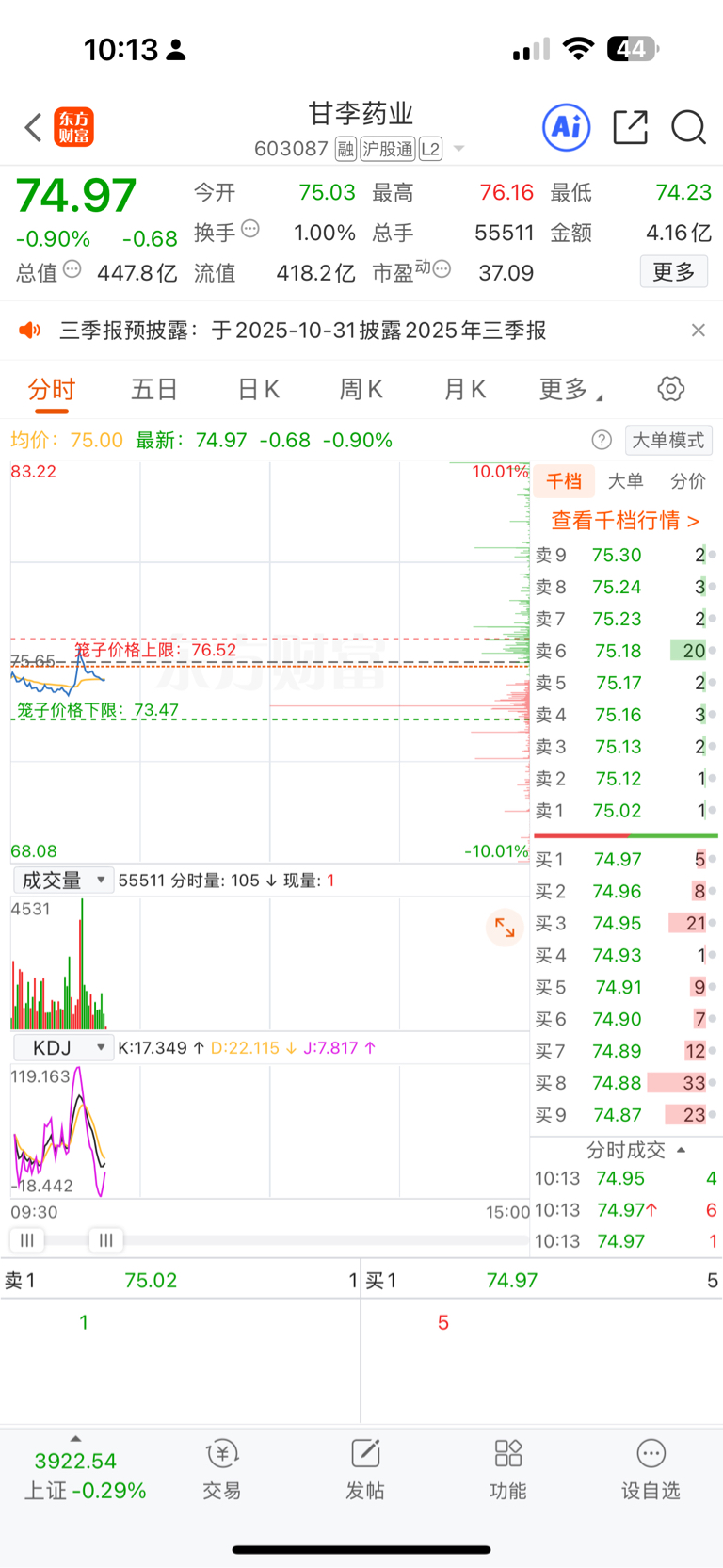 $甘李药业(SH603087)$ 之前抛弃有色和科技,来到医药,认为科技和有色调整,医药承接,你也接不住啊