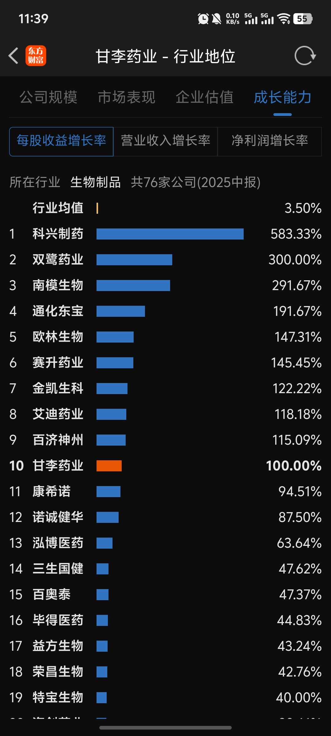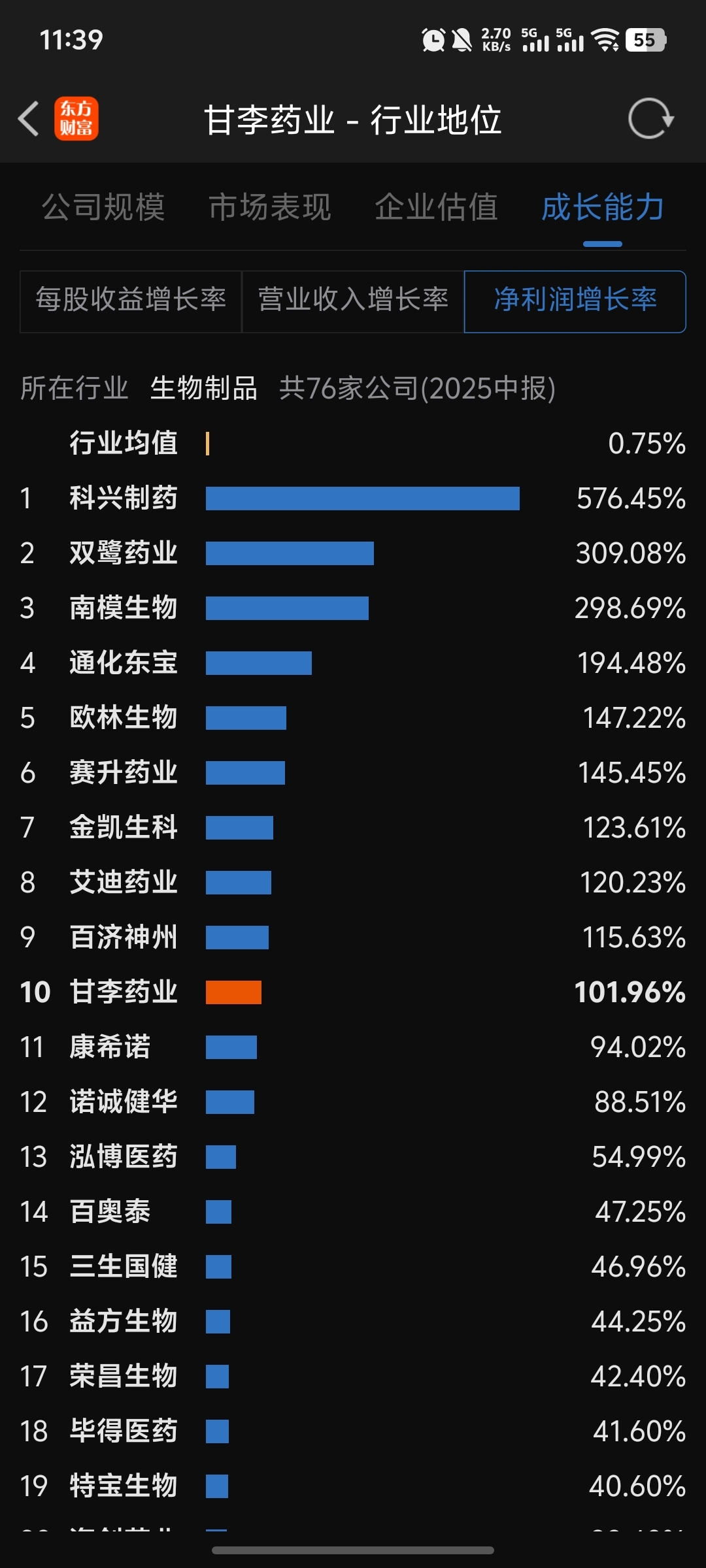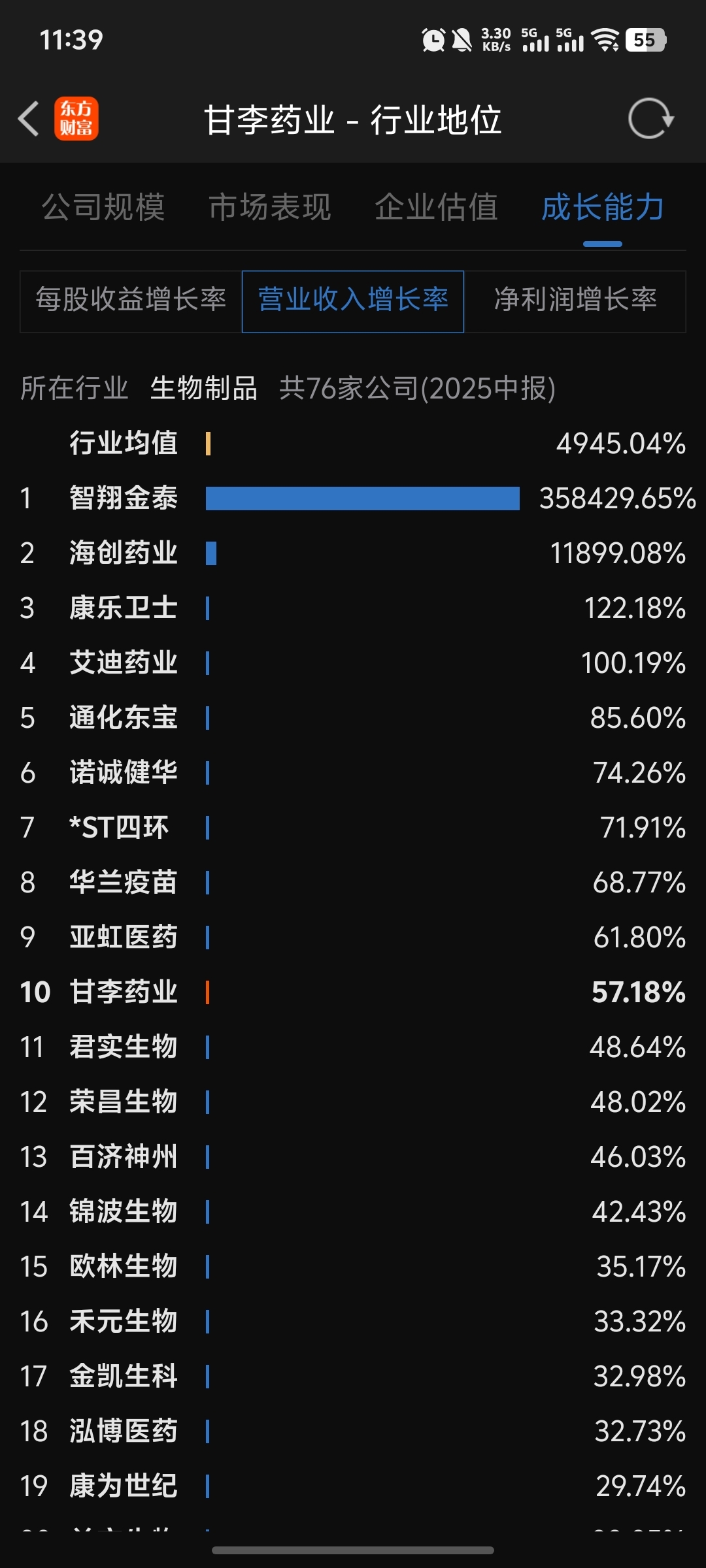 无论从哪个数据来看,甘李药业在76家生物制品的公司中是佼佼者!