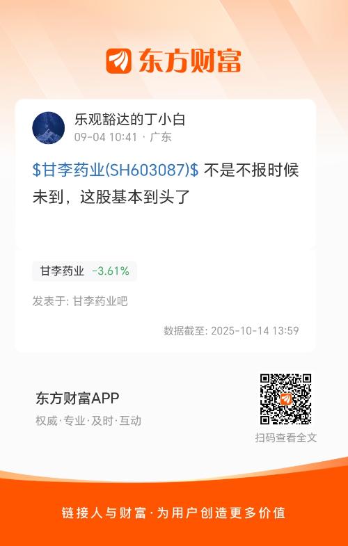 $甘李药业(SH603087)$ 不是不报时候未到,这股基本到头了