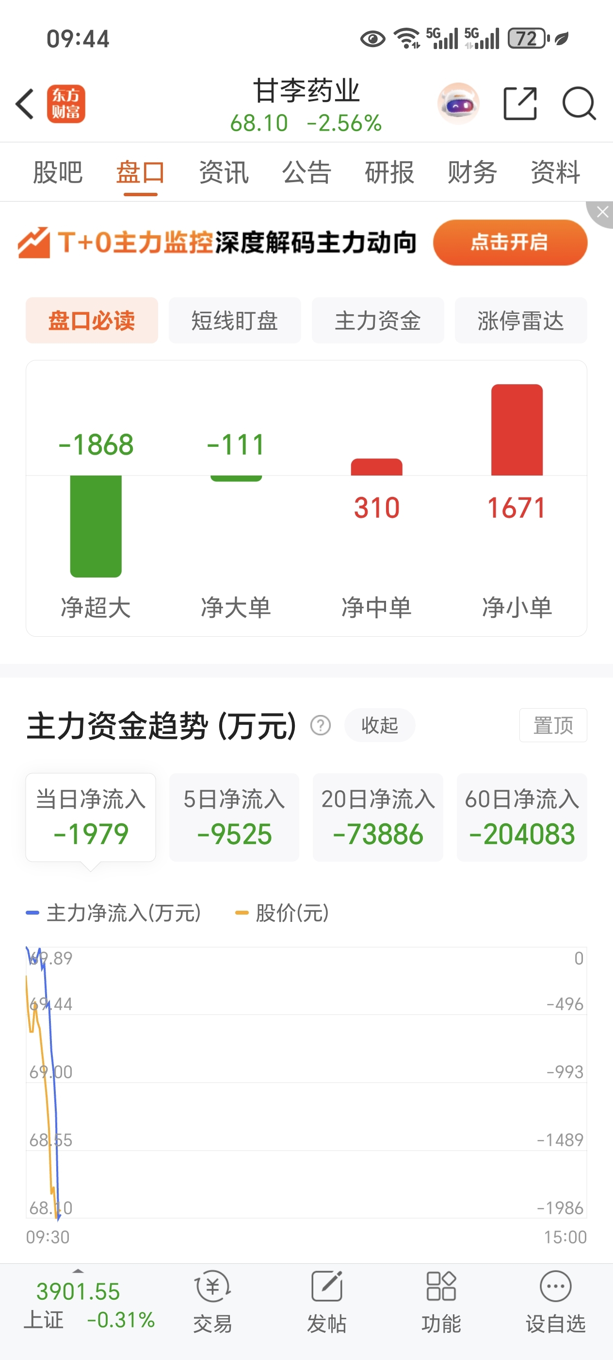 $甘李药业(SH603087)$ 主力已经连续出货,两个月,二十亿,后面大概率暴跌,获利盘出逃。没啥幻想了,亏两个点割肉离场了。