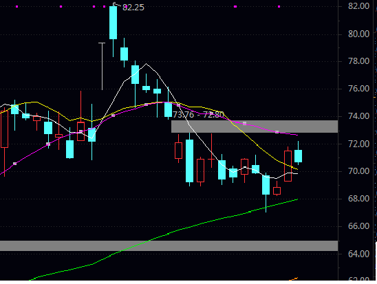 阻力二 72.72 阻力一 71.52 均 价 70.98 支撑一 69.78 支撑二 69.24