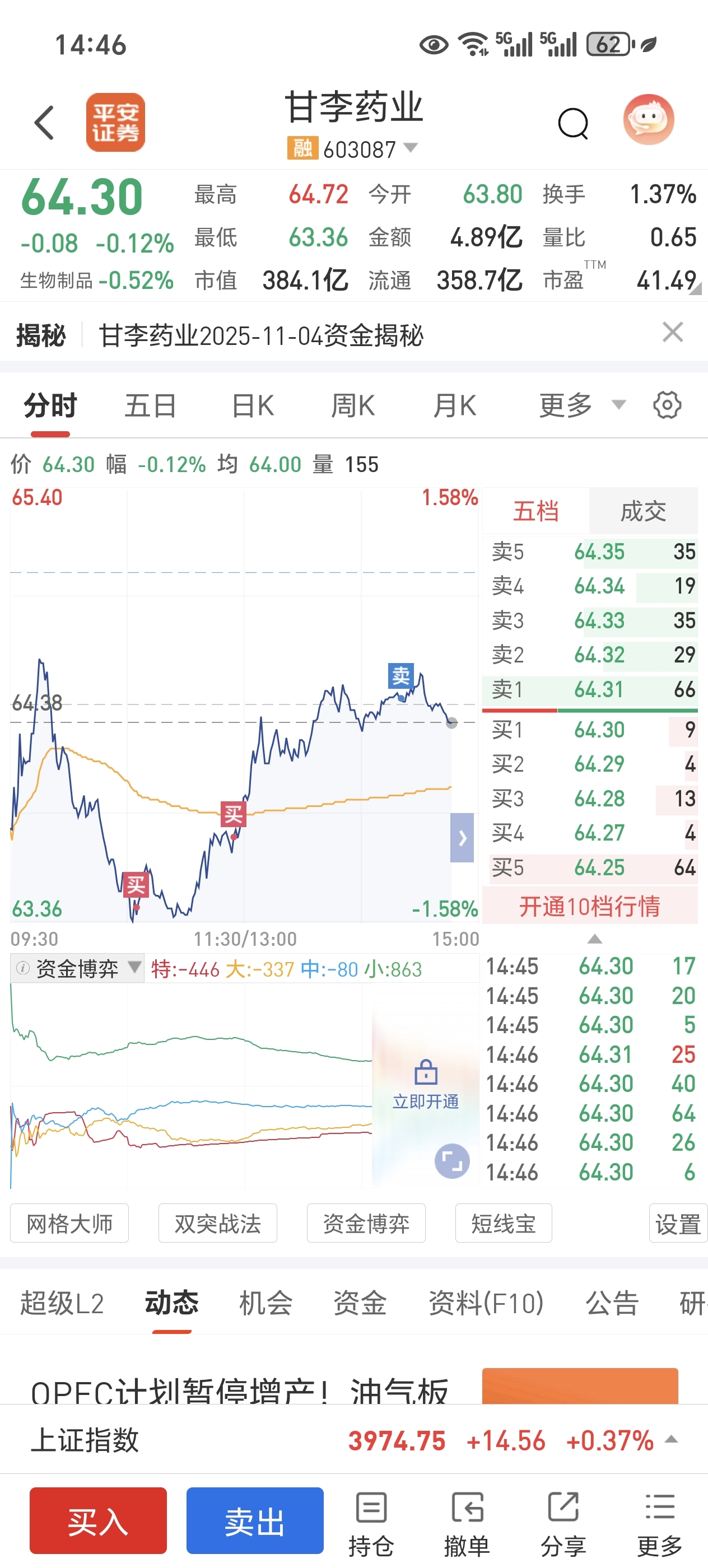 $甘李药业(SH603087)$ 清掉半仓,太恶心了,趋势垂直下跌一样