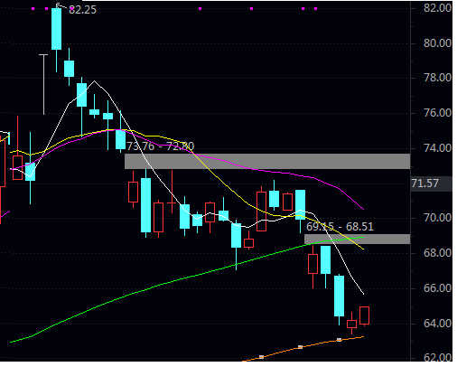 阻力二 65.83 阻力一 65.52 均 价 64.67 支撑一 64.36 支撑二 63.51